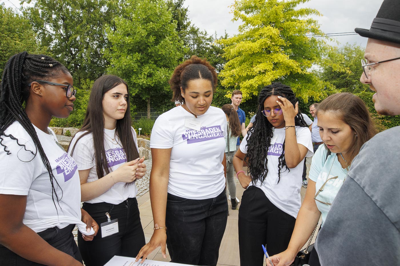 Nach 90 Minuten wuselig-buntem Treiben wurde das Büffet eröffnet. Gegen 18 Uhr folgte dann die Danksagung an alle Helfer:innen und Unterstützer von WiesPaten. Schließlich folgte die lang ersehnte Siegerehrung. Gewinner des Nachmittags war die Gruppe aus Jahrgang 9 der Sophie-und-Hans-Scholl-Schule, die als Gewinn den von der R+V STIFTUNG gespendeten Gutschein für einen Nachmittag im Superfly in Nordenstadt entgegen nehmen durften.